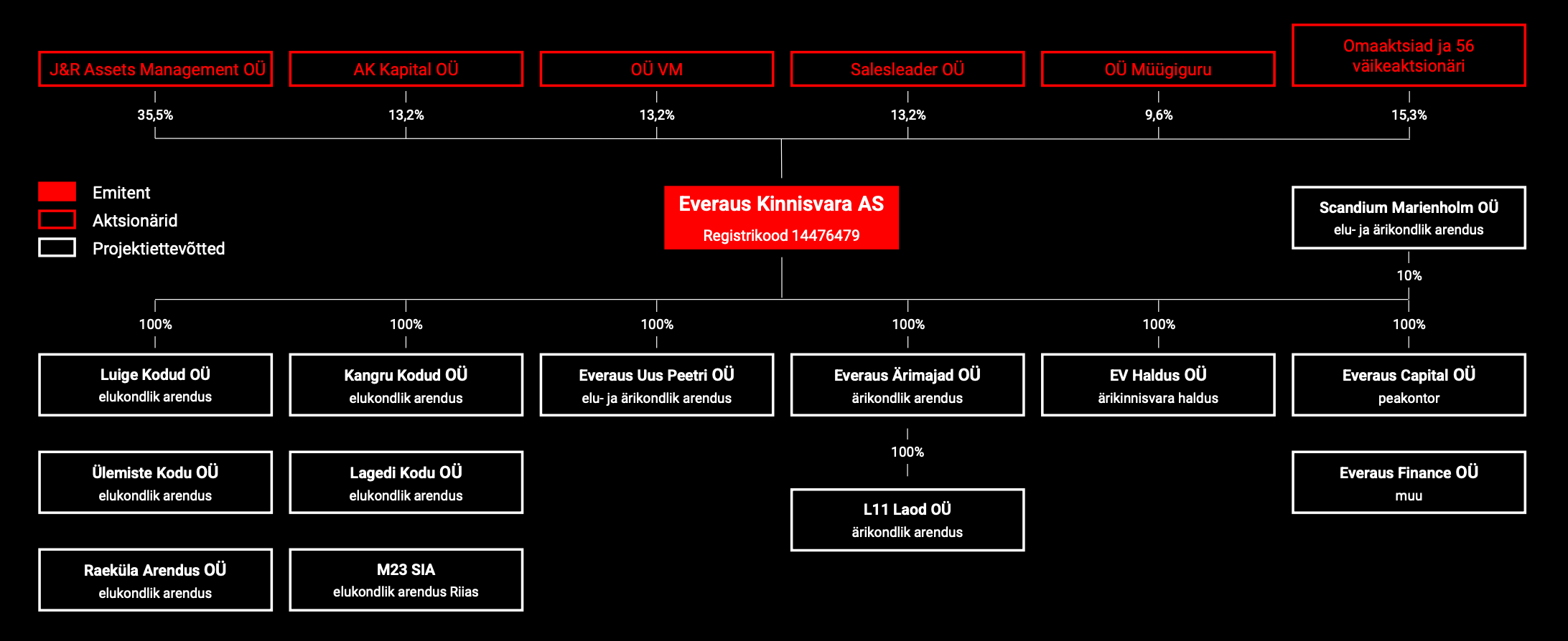 Everaus Kinnisvara on kodumaine kinnisvaraarendaja, kes on tegutsenud juba 10 aastat. Ettevõte on rajanud ja rajab energiatõhusaid omanäolise arhitektuuri ja kasutajamugava planeeringuga terviklikke elu- ja ärikeskkondi hea infrastruktuuriga asukohtadesse.