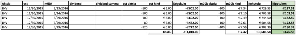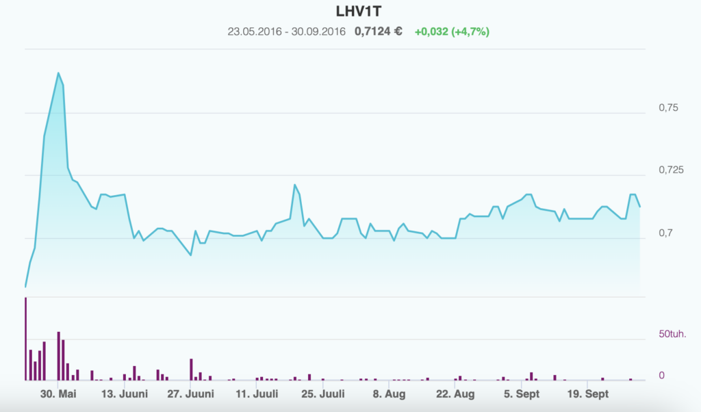 2015. aasta lõpus tekkis mul võimalus osta toona veel privaatselt kaupleva ettevõtte LHV aktsiaid. Ostsin turuvälise tehinguga 500 aktsiat hinnaga 6 eurot tükk. Järgneva aasta maikuus tegi LHV esmaemissiooni Tallinna Börsil. Aktsiaid pakuti hinnaga 6,95 eurot ühe aktsia kohta.