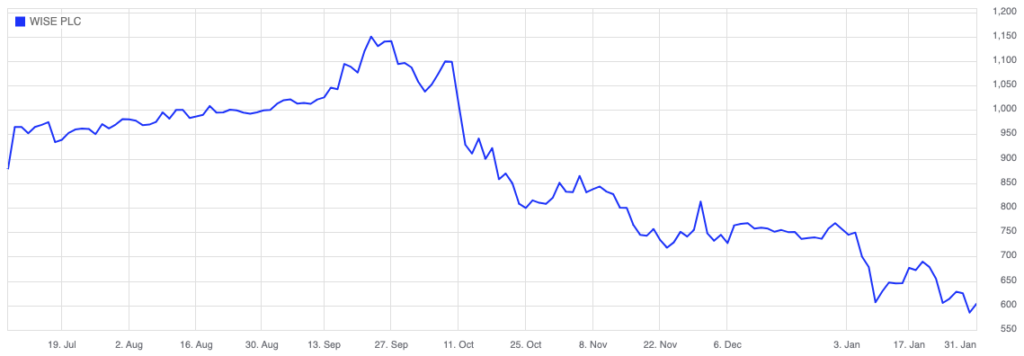 Wise aktsia IPO järgne hinnagraafik
