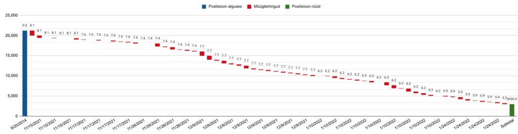 Kokkuvõttes müüsin 18 177 aktsiat kogusummas 148 000 eurot. Hoidma jäin 3 000 aktsiat turuväärtusega ~21 000 eurot.