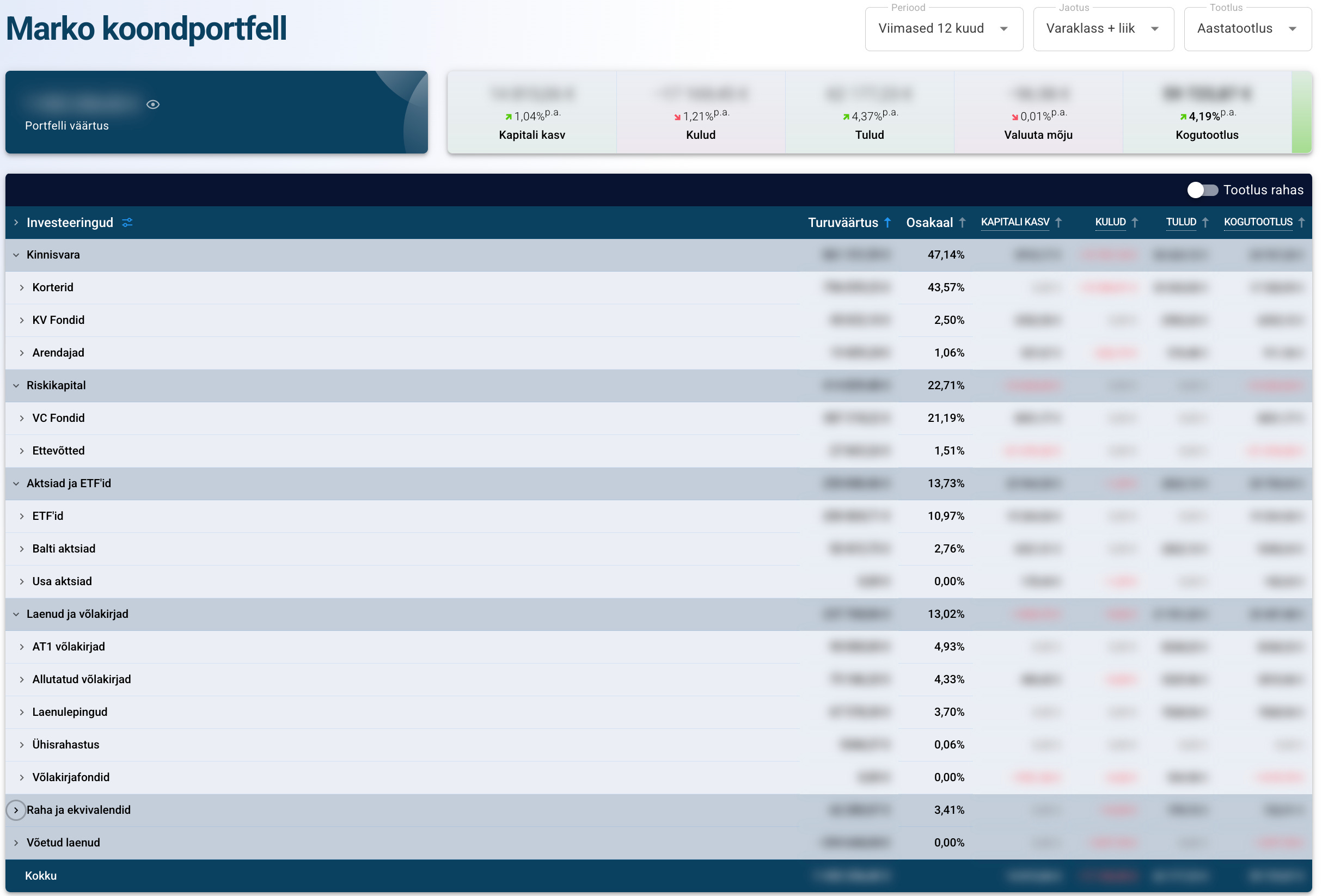 Koondvaade muudab strateegilise pildi palju selgemaks: ühe ekraanivaatega saan aru, millised varad veavad portfelli edasi, millised vajavad tähelepanu ning kuidas kogu portfell on tasakaalus.